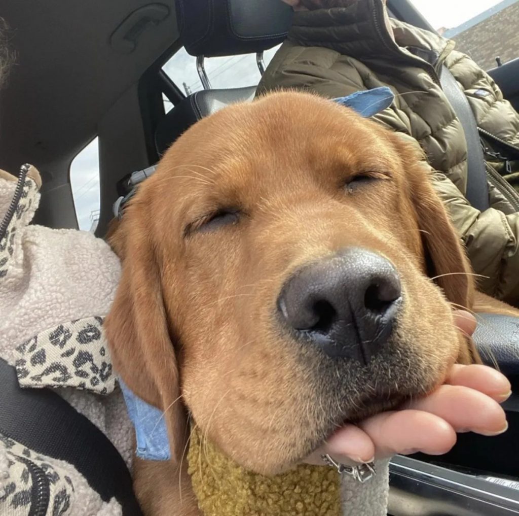 This is Marv. He doesn’t mind road trips as long as he gets to rest his noggin in the palm of someone’s hand the entire time. Just wake him pup when you’re close
